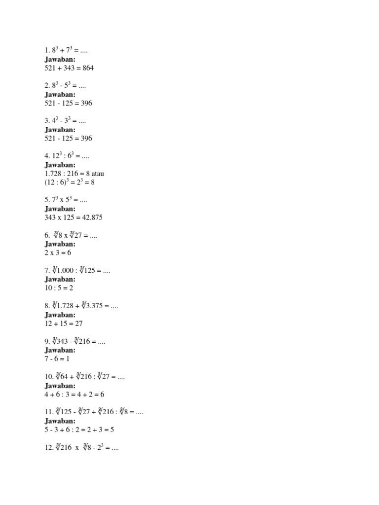 Contoh Soal Kls 6 Operasi Hitung Akar Pangkat Tiga : Daftar Rumus Matematika Sd Kelas 6 Lengkap : Semoga membantu yah oya ini aku dapat dari kakak kelasku namanya ka halima untuk soal yang lain siapa tau sobat shantycr7 juga butuh bisa dilihat disini contoh soal.